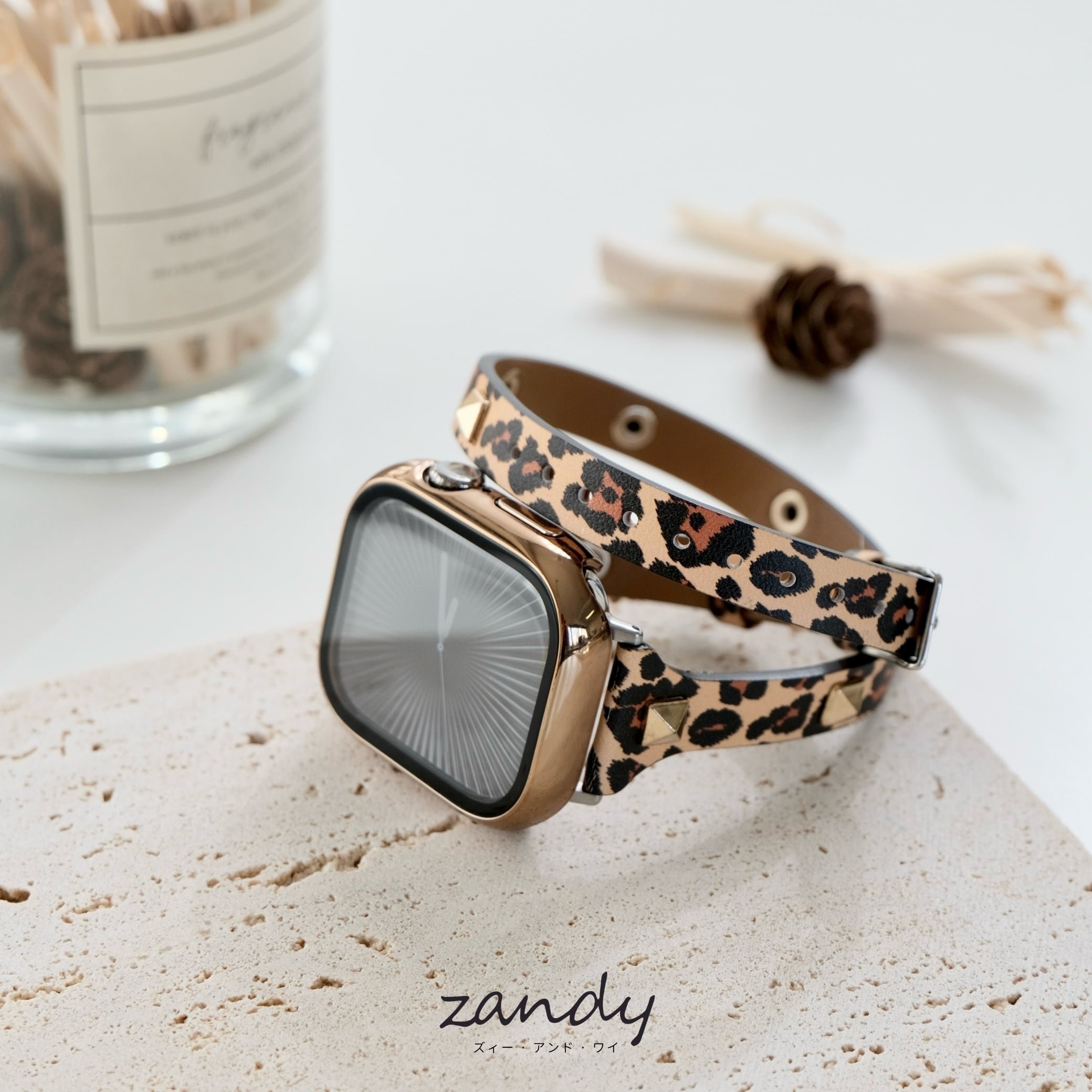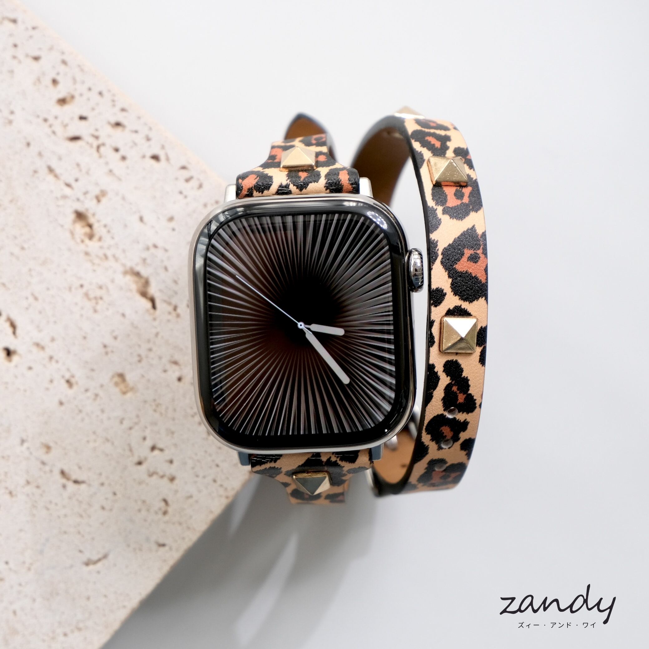 【スタッズ二重巻バンド】B017 アップルウォッチバンド レザーベルト 二重巻 Apple Watch【SET UP可】