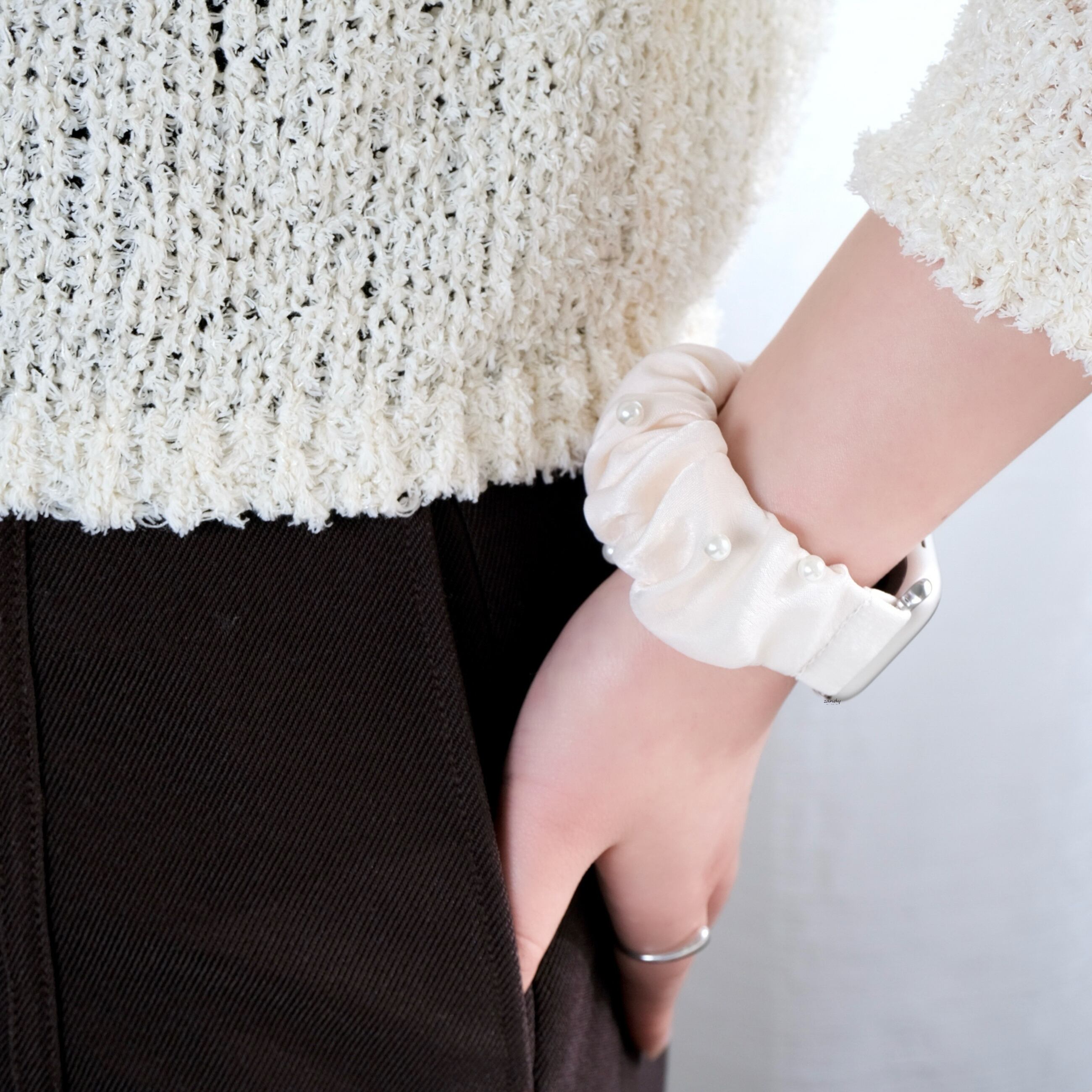 上品なパールをあしらったシュシュバンド。