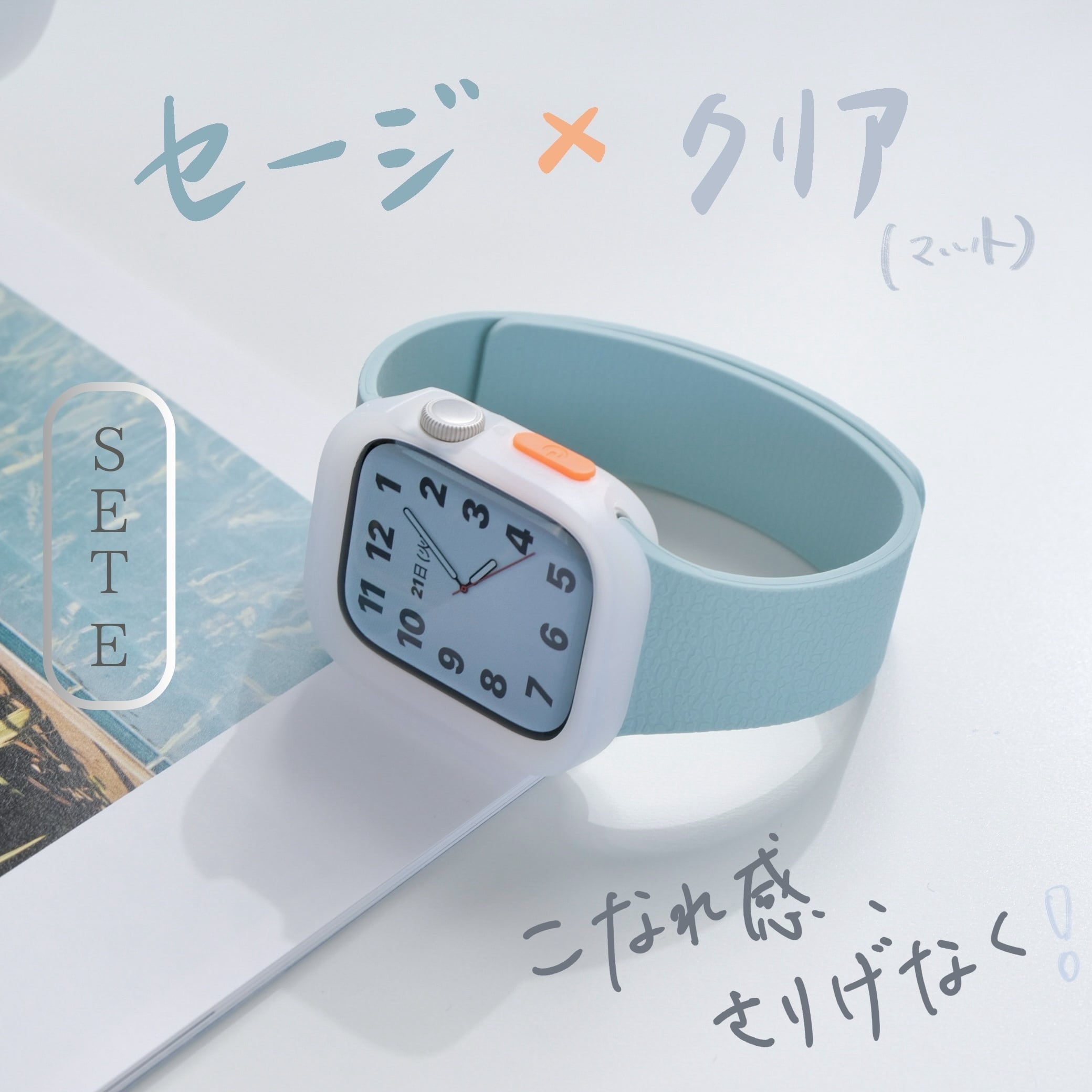 【SET】B066/C001 Apple Watch ライムゼストマグバンド+スクエアソフトフレームケース