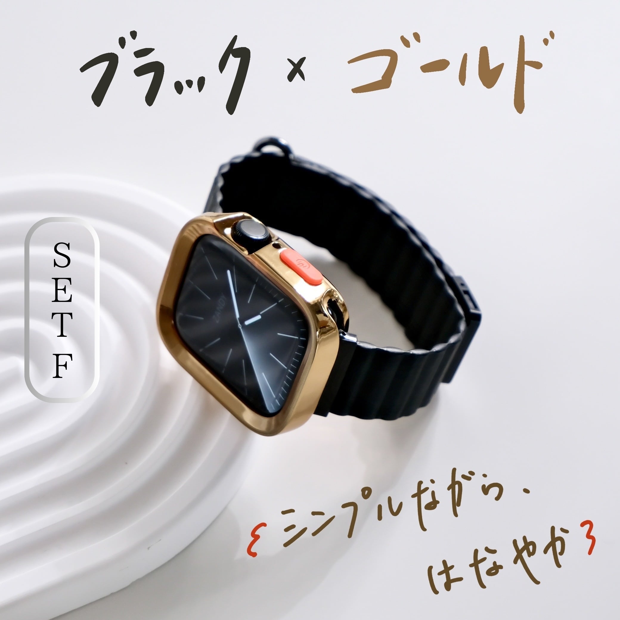 【SET】B002/C001 Apple Watch メタリックレザーループ+スクエアソフトフレームケース